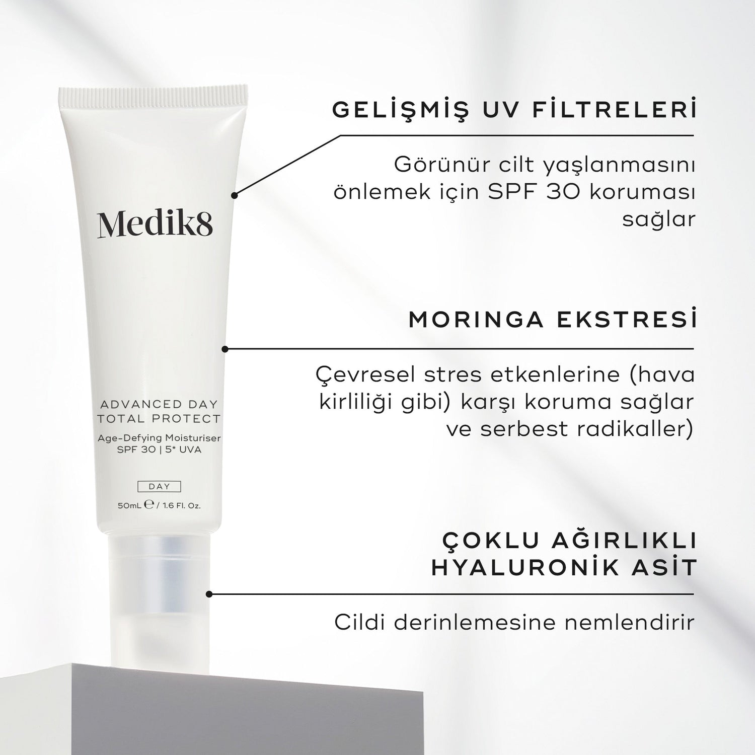 Advanced Day Total Protect ile cildinizi nemlendirin, pürüzsüzleştirin ve UV ışınlarının zararlı, yaşlandırıcı ve yakıcı etkilerinden koruyun.