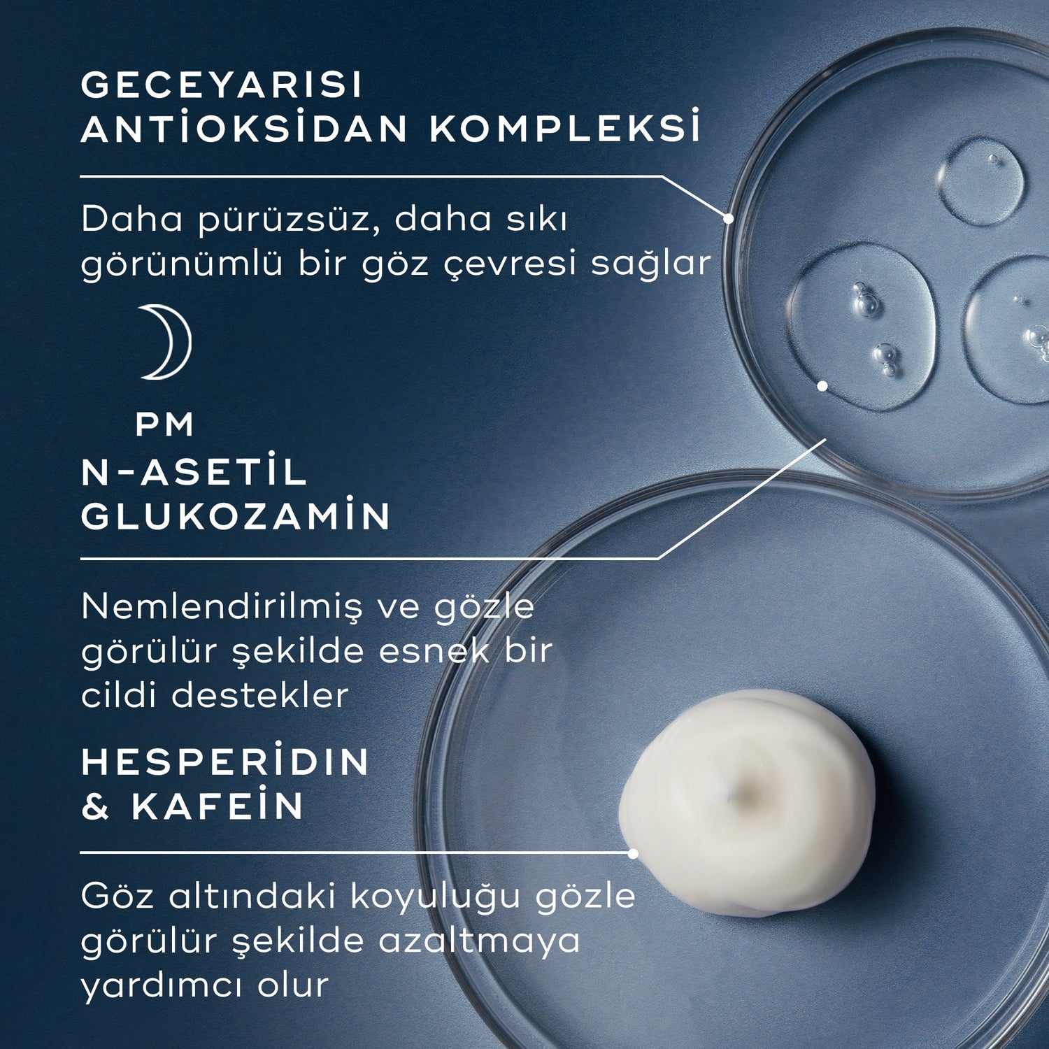A vitamini formülleri ve cildin doğal gece rejenerasyon döngüsüyle birlikte çalışmak üzere optimize edilen Advanced Night Eye, hassas göz bölgesi için besleyici bir deneyimin yanı sıra gözle görülür yaşlanma karşıtı sonuçlar sağlar.
