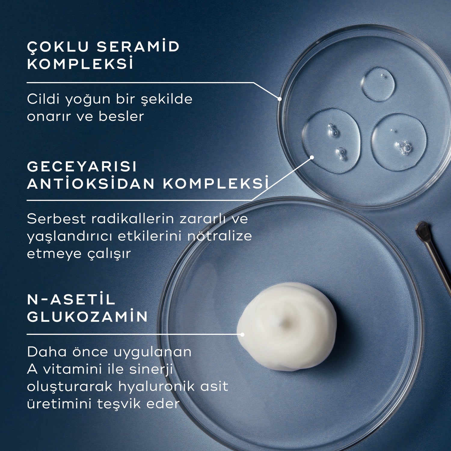 Cildinizin doğal bariyerini desteklerken gözle görülür gençleştirici sonuçlar sunan bu seramid açısından zengin formülle uyurken cildinizi derinlemesine besleyin ve gözle görülür şekilde sıkılaştırın.